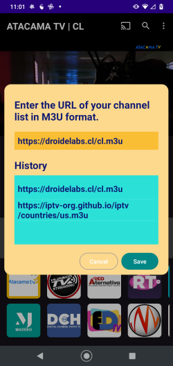 📜 Historial de URLs: Cambia entre diferentes listas M3U fácilmente gracias al historial de enlaces que has usado.